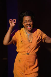 Chester Gregory embodies the role of Man in the Saloon with a cocky assurance and sly, devilish charm perfect for such songs as “I’m Just a Lucky So-And–So”. He also joins his female castmates in a sterling rendition of the title song. Jenna Gillespie Byrd is The Girl with a Date, the hotel’s newest resident. Her youth, energy and enthusiasm is infections in her songs from “Taking A Chance on Love” to “Willow Weep for Me”.